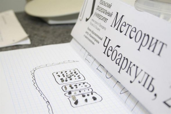 La Universidad Federal de los Urales de Ekaterimburgo inspecciona en su Centro Científico y de Educación sobre Nanotecnologías y Nanomateriales los fragmentos del meteorito que cayó el pasado 15 de febrero y que fueron encontrados por una expedición de científicos.