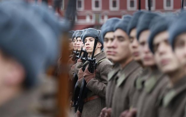 Soldados rusos con uniformes históricos marcharon en la Plaza Roja Publicado: Domingo, 5 de Noviembre de 2017 2 de 18 Soldados rusos con uniformes históricos participan en el ensayo de desfile militar en la Plaza Roja de Moscú. Soldados rusos con uniformes históricos participan en el ensayo de desfile militar en la Plaza Roja de Moscú.EFE