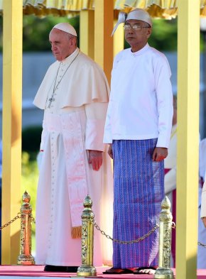 El papa Francisco llegó al palacio presidencial birmano en la capital, Naipyido, para reunirse con el presidente del país, Htin Kyaw, y con la jefa de facto del Gobierno y nobel de la Paz, Aung San Suu Kyi.
