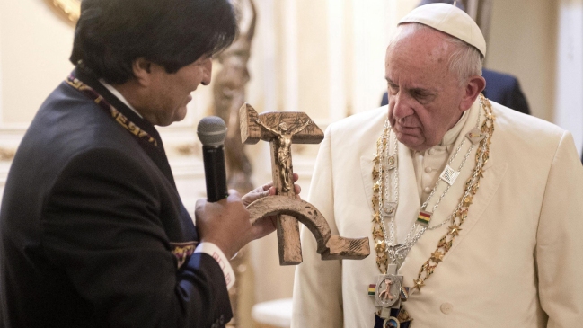 Francisco aseguró además que no se ofendió por el crucifijo sobre la hoz y el martillo que le regaló el presidente boliviano, Evo Morales.