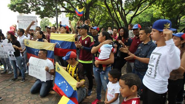 | Cientos de venezolanos se reunieron en Paseo Bulnes (centro de Santiago) para protestar en contra Maduro