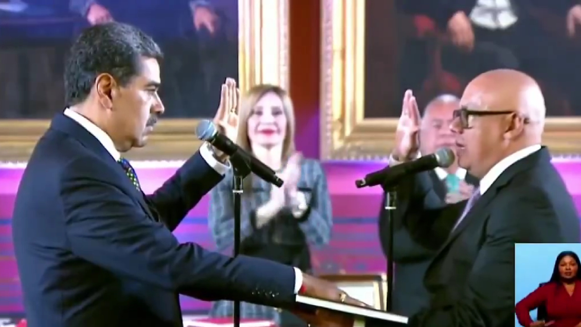 El líder del chavismo, Nicolás Maduro, fue juramentado este viernes como el presidente de Venezuela, para el período 2025-2031, por la Asamblea Nacional (AN, Parlamento), controlado por el oficialismo, pese a que la oposición mayoritaria reivindica que Edmundo González Urrutia fue el ganador de los comicios de julio pasado.
