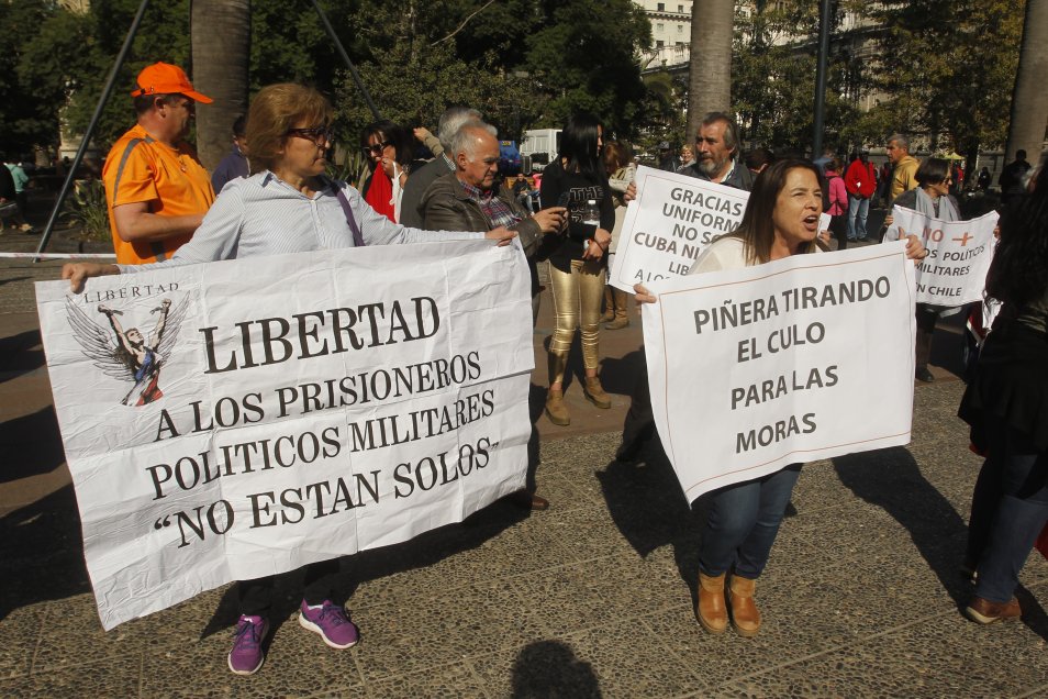 Unos 20 manifestantes "pinochetistas" llegaron hasta el frontis del Museo Histórico Nacional para "exigir al Presidente Piñera" la renuncia de la ministra de las Culturas, Alejandra Pérez. Según el grupo, liderado por 2 uniformados en retiro, la secretaria de Estado debe salir del gabinete por pedir la renuncia del director del recinto, por una muestra que incluía fotos del dictador.