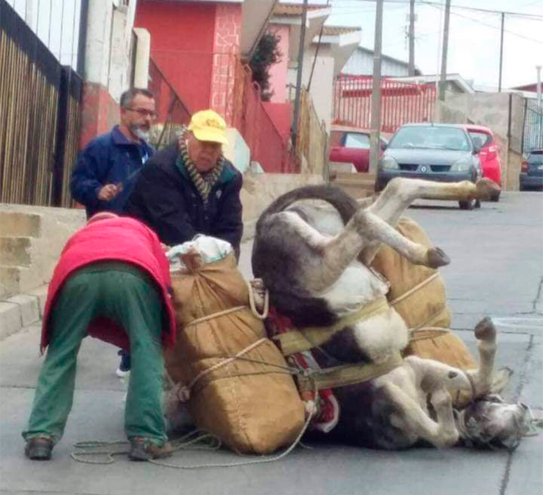 Un brutal caso de maltrato animal se detectó este miércoles en el cerro El Litre, en Valparaíso, donde un burro se desplomó producto del exceso de peso que llevaba a cuestas.