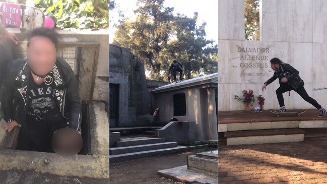 "Sujetos ocuparon las instalaciones para profanar tumbas, patinar sobre mausoleos -entre ellos, el del expresidente Salvador Allende- y rayar las instalaciones", indicó; de hecho, en los registros, se puede ver a uno de los individuos con un cráneo en su mano.