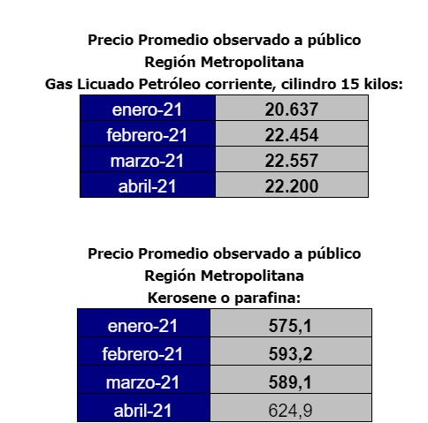 Por otro lado, según la Comisión Nacional de Energía, un cilindro de gas de 15 kilos en la Región Metropolitana pasó de 26.600 pesos en enero a 22.200 en abril; mientras que el litro de parafina saltó de 575 pesos en enero, a 624 pesos a fines del mes pasado.