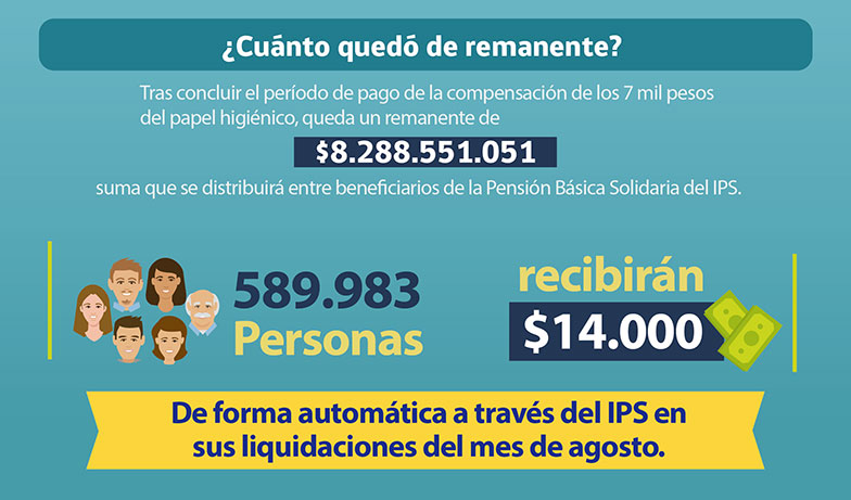 La compensación superó los 89 mil millones de pesos por lo que se registró un remanente de 8.288.551.051 pesos que serán distribuidos a las personas con Pensión Básica Solidaria.