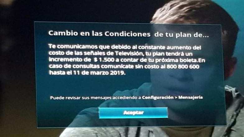 El Servicio denuncia que "la empresa comunicó a los consumidores de este incremento unilateral a través de documentos adjuntos en la boleta de pago, correos electrónicos y un cuadro informativo que aparecía desplegado en la pantalla de los televisores, obligando a los consumidores a aceptar las nuevas condiciones para poder seguir viendo la programación".