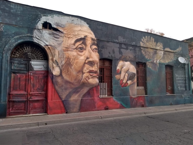 En calle Catedral con Herrera, en pleno barrio Yungay, a solo una cuadra del Museo de la Memoria hay un mural en homenaje a Ana González.
