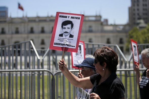 Familiares de detenidos desaparecidos durante la dictadura protestaron frente a La Moneda para exigir que se cierre el penal de Punta Peuco, donde están detenidos los militares condenados por delitos de lesa humanidad.