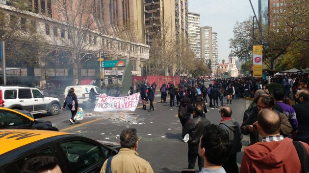 | También se bloqueó el tránsito en Providencia, frente al Liceo 7 de Niñas #EstoEsCooperativa (Foto de @Gisel_7)
