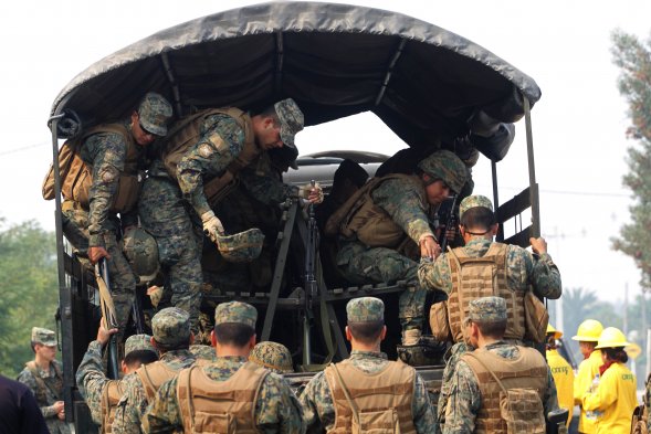 Bomberos trabaja en contener el fuego en un bosque de San Pedro de Alcántara, región de O'Higgins, donde más de 140 mil hectáreas han sido sido consumidas producto de los incendios forestales.