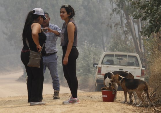 Bomberos trabaja en contener el fuego en un bosque de San Pedro de Alcántara, región de O'Higgins, donde más de 140 mil hectáreas han sido sido consumidas producto de los incendios forestales.