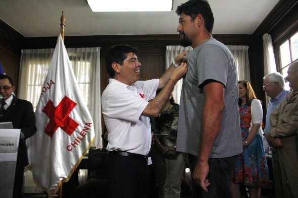 El presidente de Cruz Roja Chilena, Patricio Acosta, condecoró a toda la tripulación del SuperTanker, avión Boeing 747 que cooperó activamente en el combate de los incendios forestales que afectaron al sector centro sur del país.