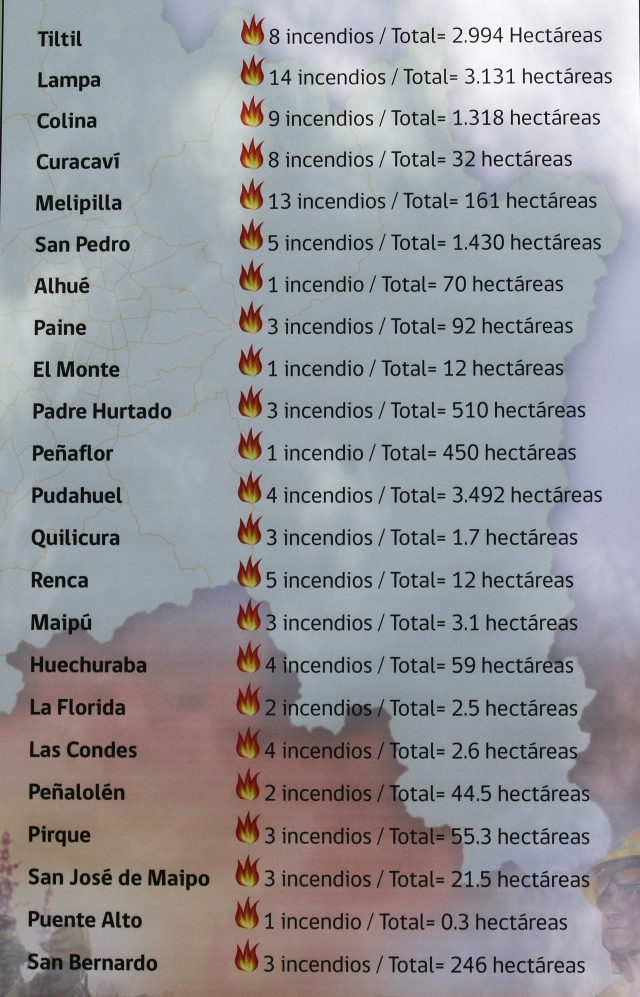 Las autoridades entregaron el balance de los incendios forestales en la Región Metropolitana desde julio a la fecha, con un triste aumento de siniestros y superficie quemada con respecto al año anterior.