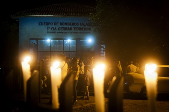 Habitantes de Talagante realizaron una velatón como homenaje al bombero Hernán Avilés, fallecido en el combate de los incendios en Constitución, en el frontis de la Primera Compañía de Bomberos de la comuna.