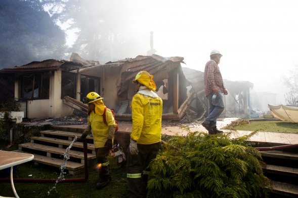 El incendio forestal que afecta el sector de Palomares, a la entrada de Concepción, destruyó varias viviendas y se extendió hacia los cerros cercanos a Penco, por detrás de la cárcel El Manzano.