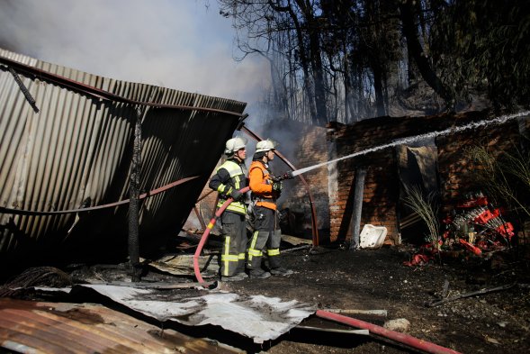 El incendio forestal que afecta el sector de Palomares, a la entrada de Concepción, destruyó varias viviendas y se extendió hacia los cerros cercanos a Penco, por detrás de la cárcel El Manzano.