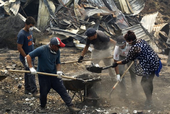 Cientos de personas participan este sábado en las labores de reconstrucción y limpieza del arrasado pueblo de Santa Olga, Región del Maule, luego de los incendios forestales.