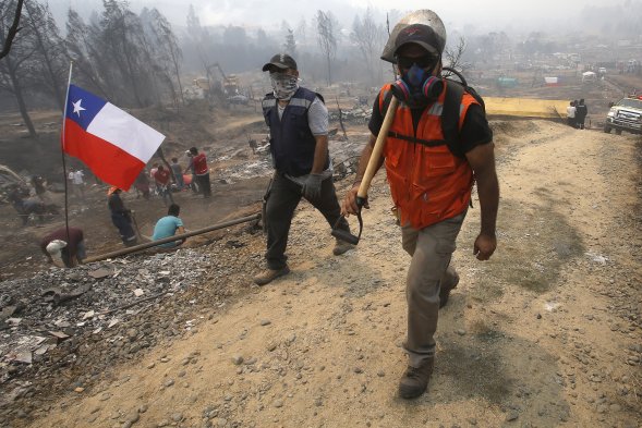 Cientos de personas participan este sábado en las labores de reconstrucción y limpieza del arrasado pueblo de Santa Olga, Región del Maule, luego de los incendios forestales.