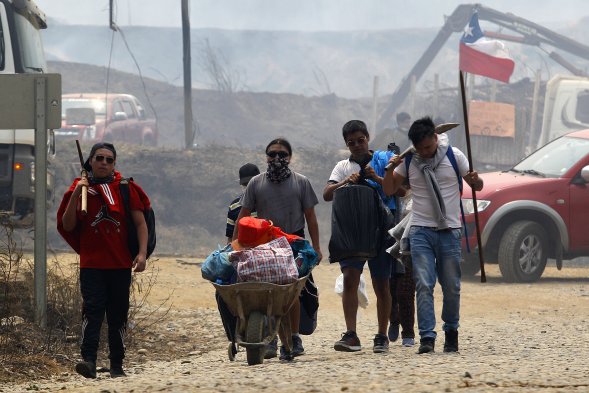 Cientos de personas participan este sábado en las labores de reconstrucción y limpieza del arrasado pueblo de Santa Olga, Región del Maule, luego de los incendios forestales.