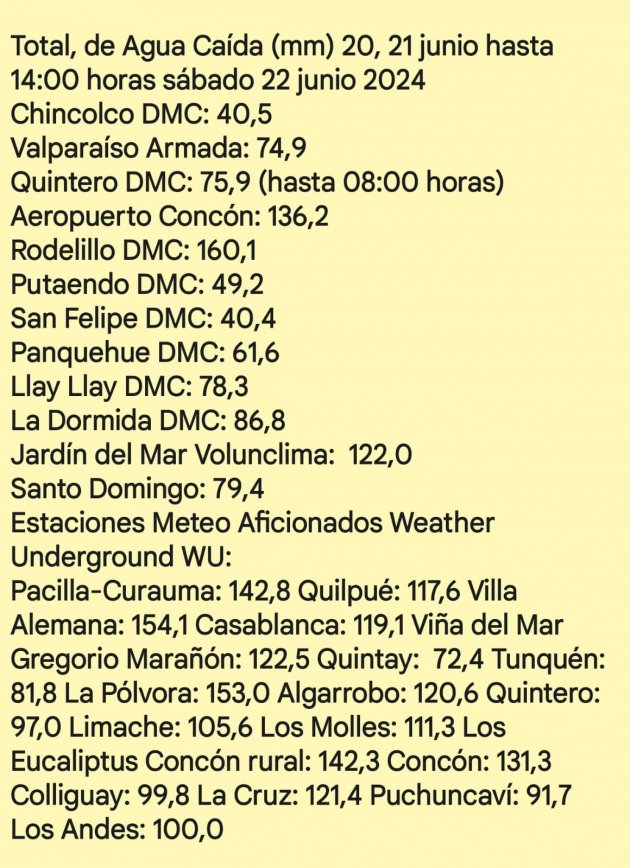 | Según el reporte, el río Vergara alcanzó el "umbral de alerta amarilla", sin embargo, "pese a la disminución del caudal, continúa considerándose una situación de riesgo, ya que en caso de un aumento de éste podría alcanzar una alerta roja y eventualmente producir daños a sectores poblados e infraestructura"