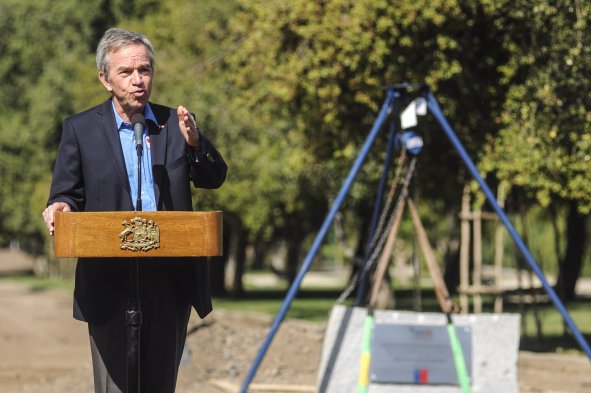 Vecinos de Cerro Navia protestaron por el cierre de colegios municipales de la comuna, en medio de la ceremonia de colocación de la primera piedra del Proyecto Mapocho 42K, encabezada por el Presidente de la República, Sebastián Piñera.