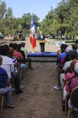 Vecinos de Cerro Navia protestaron por el cierre de colegios municipales de la comuna, en medio de la ceremonia de colocación de la primera piedra del Proyecto Mapocho 42K, encabezada por el Presidente de la República, Sebastián Piñera.