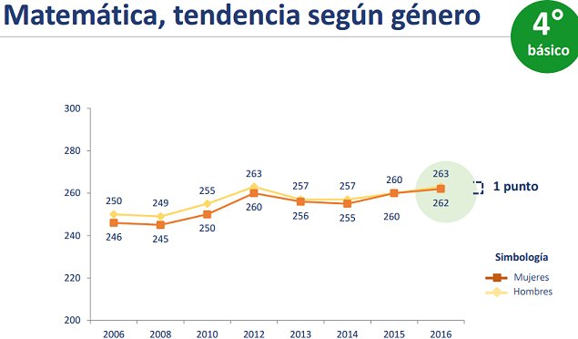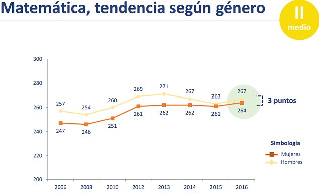 "Tanto en básica como en media tenemos un avance notable de los resultados de las mujeres en Matemática, donde las antiguas brechas de género a favor de los hombres desaparecen", explicó Henríquez.