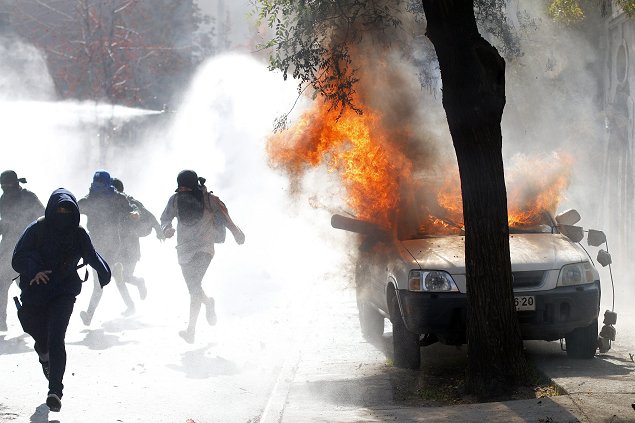 La jornada de protesta terrminó con 120 personas detenidas en la capital y el intendente Claudio Orrego anunció la presentación de querellas contra los responsables de los desmanes, además de un "equipo de inteligencia para identificar" a los encapuchados.