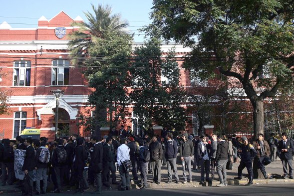 Alumnos del Barros Borgoño protestan por detención de compañero