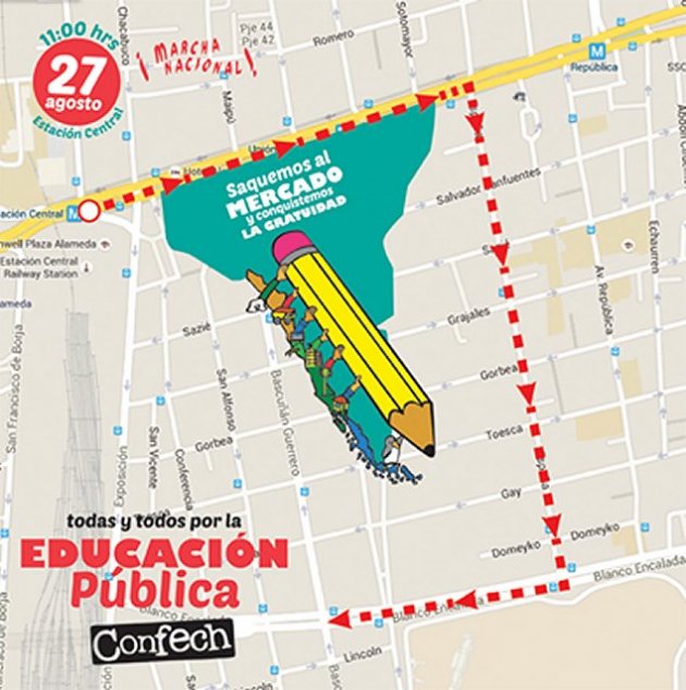 | La manifestación convocada en Santiago está autorizada por la Intendencia para desarrollarse en las 11:00 y las 14:00 horas, pero con un recorrido distinto al solicitado originalmente por los estudiantes.