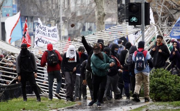 | En medio de ésta también hubo incidentes provocados por un centenar encapuchados que empezó a retirar las rejas ubicadas por Carabineros en el recorrido, lo que dio origen a enfrentamientos.
