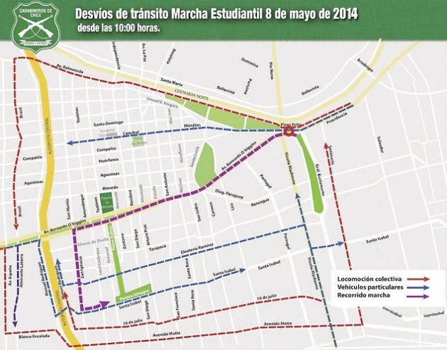 20140508080841 | Los desvíos de tránsito por la marcha estudiantil comienzan a las 10:00 horas en Santiago.