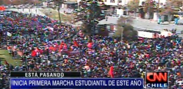 20140508130256 | Los líderes estudiantiles cifran en 100 mil los asistentes a la marcha en Santiago. Carabineros estima preliminarmente una concurrencia de 40 mil personas.