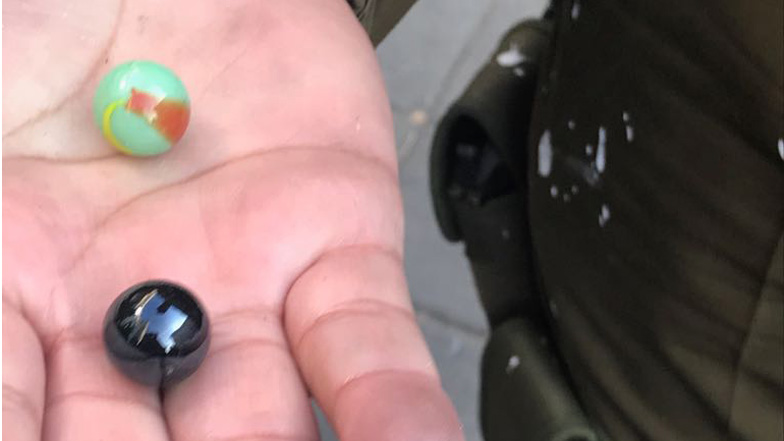 Las bolitas con las que estudiantes, apoyados de hondas, atacaron a Carabineros. (Foto: María Paz López, Cooperativa)