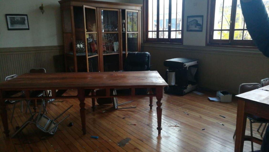 Una protesta realizada por estudiantes la mañana de este lunes dejó numerosos daños en dependencias del Liceo de Aplicación, en el centro de Santiago. Uno de los sectores más afectados fue la oficina del rector, según muestran imágenes difundidas por la Municipalidad de Santiago. Más temprano los jóvenes instalaron barricadas en Avenida Ricardo Cumming, se enfrentaron a Carabineros y agredieron a profesionales de la prensa.