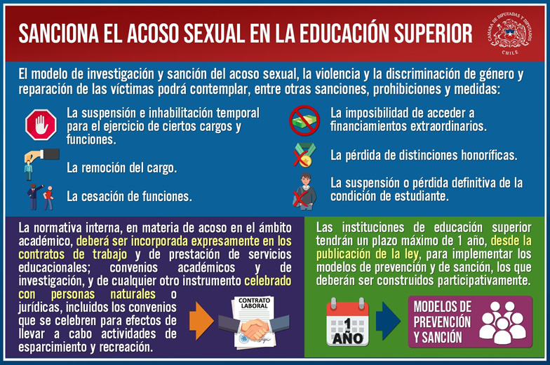 El texto, presentado por los senadores PS Isabel Allende y Carlos Montes, la independiente pro PPD Ximena Órdenes, la DC Yasna Provoste y la UDI Ena Von Baer, busca "promover políticas integrales orientadas a prevenir, investigar, sancionar y erradicar el acoso sexual, la violencia y la discriminación de género, y proteger y reparar a las víctimas en el ámbito de la educación superior".