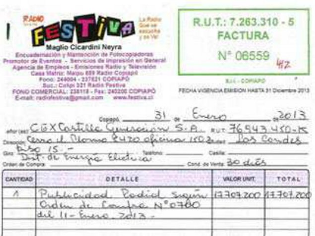 Desde la empresa CGX Castilla Generación también señalaron que el pago corresponde a una campaña publicitaria que se realizó en diversos medios locales para dar a conocer las características y beneficios de Central Castilla, consigna El Mercurio.