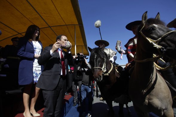 Con la autorización del intendente de la Región del Biobío, Rodrigo Díaz (i), se dio inicio a la tradicional Parada Militar en Concepción donde más de 5.000 efectivos de las Fuerzas Armadas y Carabineros marcharon por la avenida Bernardo O'Higgins.