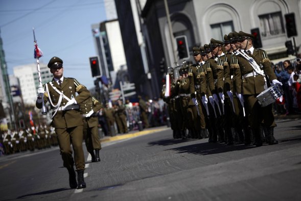 Con la autorización del intendente de la Región del Biobío, Rodrigo Díaz (i), se dio inicio a la tradicional Parada Militar en Concepción donde más de 5.000 efectivos de las Fuerzas Armadas y Carabineros marcharon por la avenida Bernardo O'Higgins.
