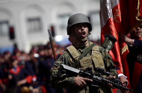 Con la autorización del intendente de la Región del Biobío, Rodrigo Díaz (i), se dio inicio a la tradicional Parada Militar en Concepción donde más de 5.000 efectivos de las Fuerzas Armadas y Carabineros marcharon por la avenida Bernardo O'Higgins.