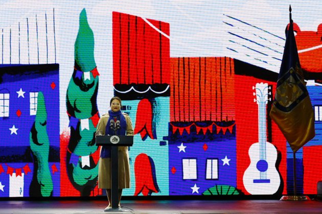 | "Gracias por estar acá y construir este país en conjunto", dice la alcaldesa de Santiago, Irací Hassler, en su discurso durante la inauguración de las fondas del Parque O'Higgins. ATON