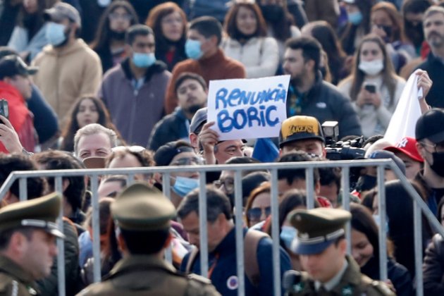 10:56 - | #CooperativaContigo Con abucheos y gritos, un grupo de cerca de 50 personas se manifiestan contra del Presidente Boric en la #ParadaMilitar2022
