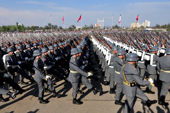 Cerca de dos horas duró la tradicional Parada Militar en el Parque O'Higgins. La Presidenta Michelle Bachelet señaló que el desfile de las FF.AA. y de Orden llena a todo los "chilenos de orgullo" y calificó el evento como "brillante".