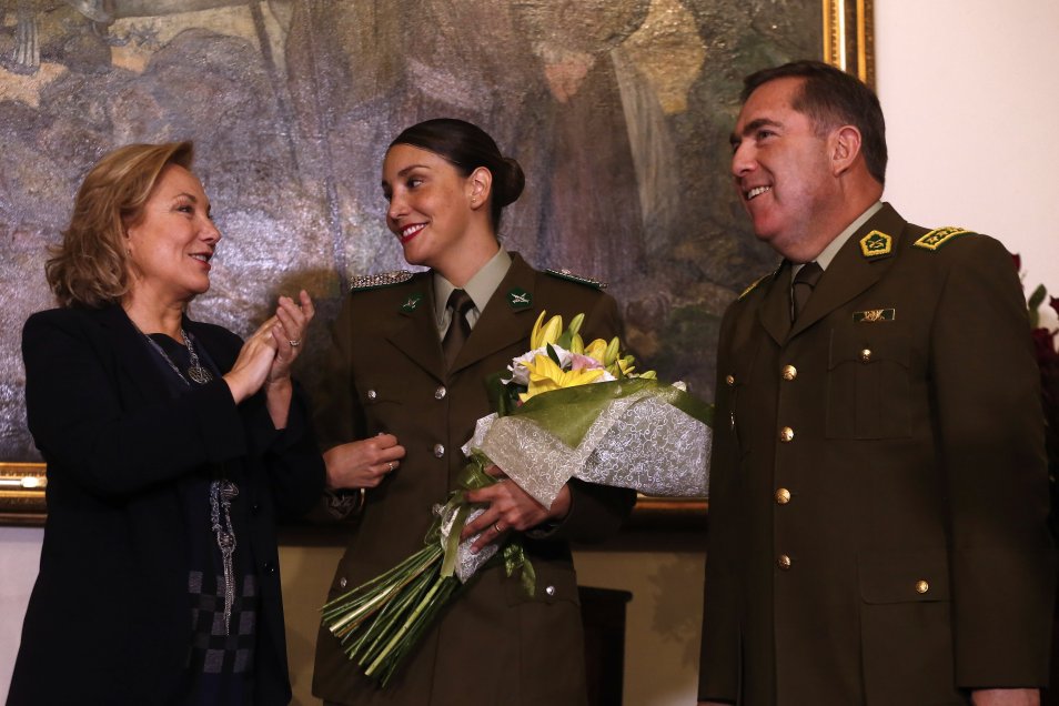 Andrea Neira, teniente de Carabineros, fue reincorporada a la institución tras denunciar que había sido desvinculada durante su fuero maternal en 2015. Este martes en el palacio de La Moneda se realizó la ceremonia oficial en que fue recibida por la Primera Dama Cecilia Morel.
