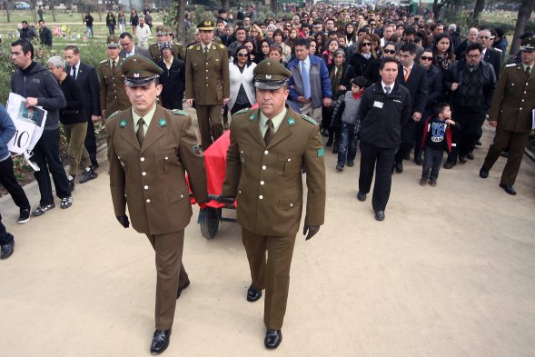 Funerales del subteniente de Carabineros, Daniel Silva Rodríguez, en la Parque El Prado de la comuna de La Florida, quien falleciera en el asalto a la Caja de Compensación Los Héroes, en la comuna de Macul.