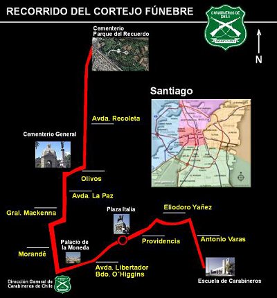 Un mapa del recorrido que seguirá el cortejo (Cooperativa.cl) |