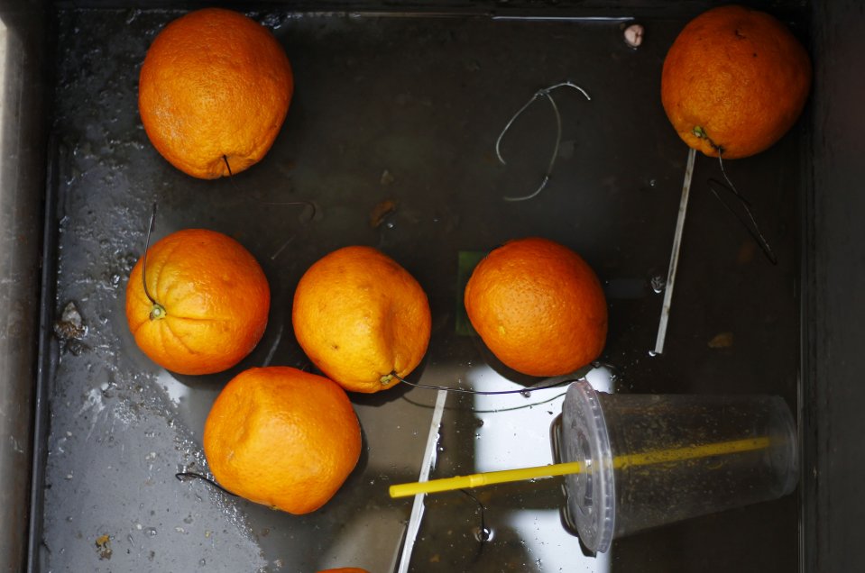 Las naranjas que habían sido colgadas con alambres para rellenar los árboles de uno de los patios de La Moneda tuvieron un triste final: fueron retiradas y botadas a la basura en el mismo palacio de Gobierno.