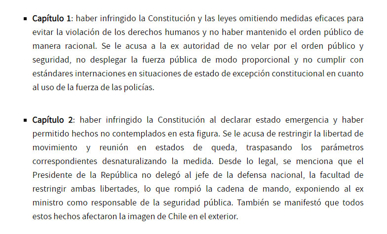 Los dos capítulos de la acusación. (Fuente: Senado)